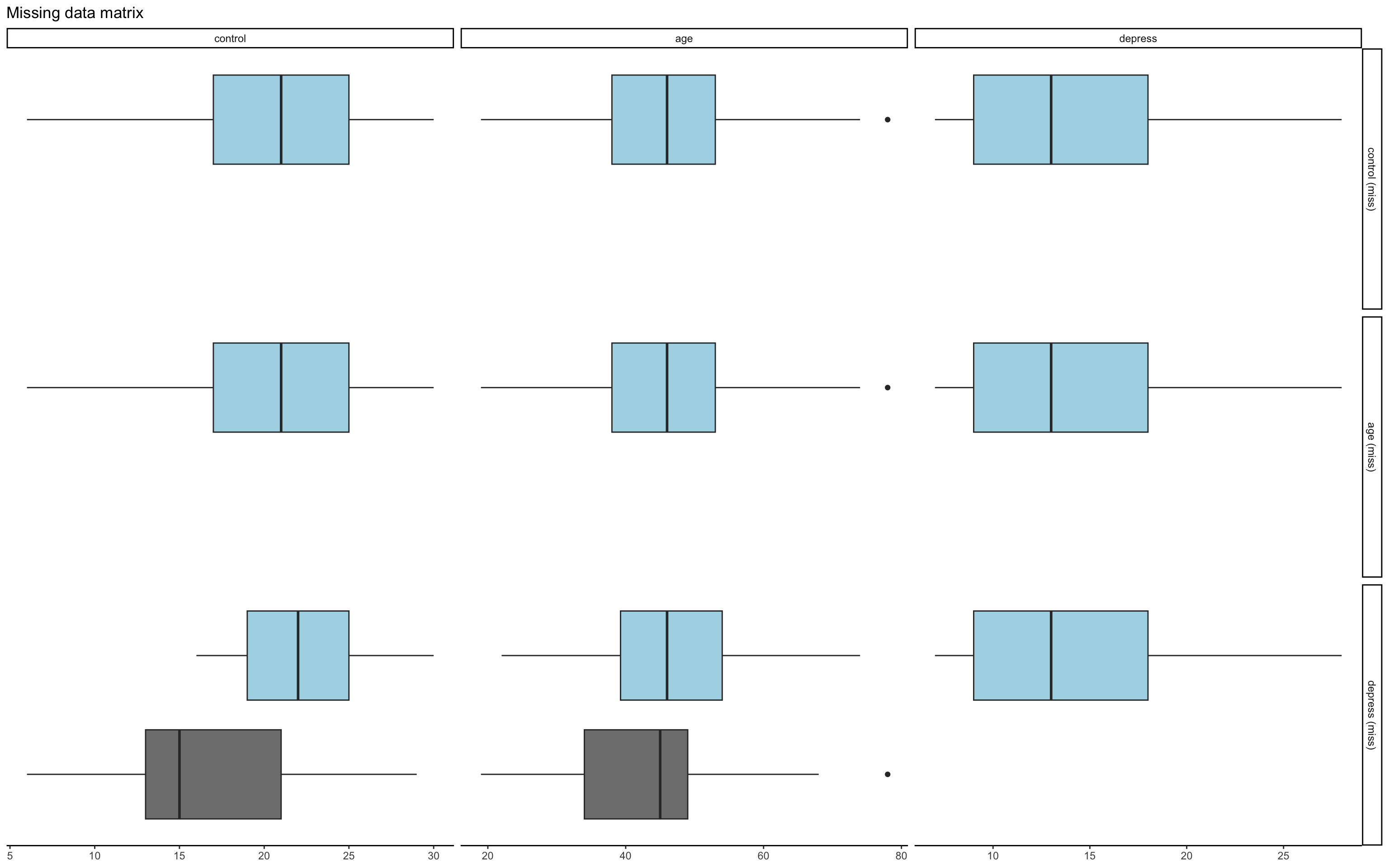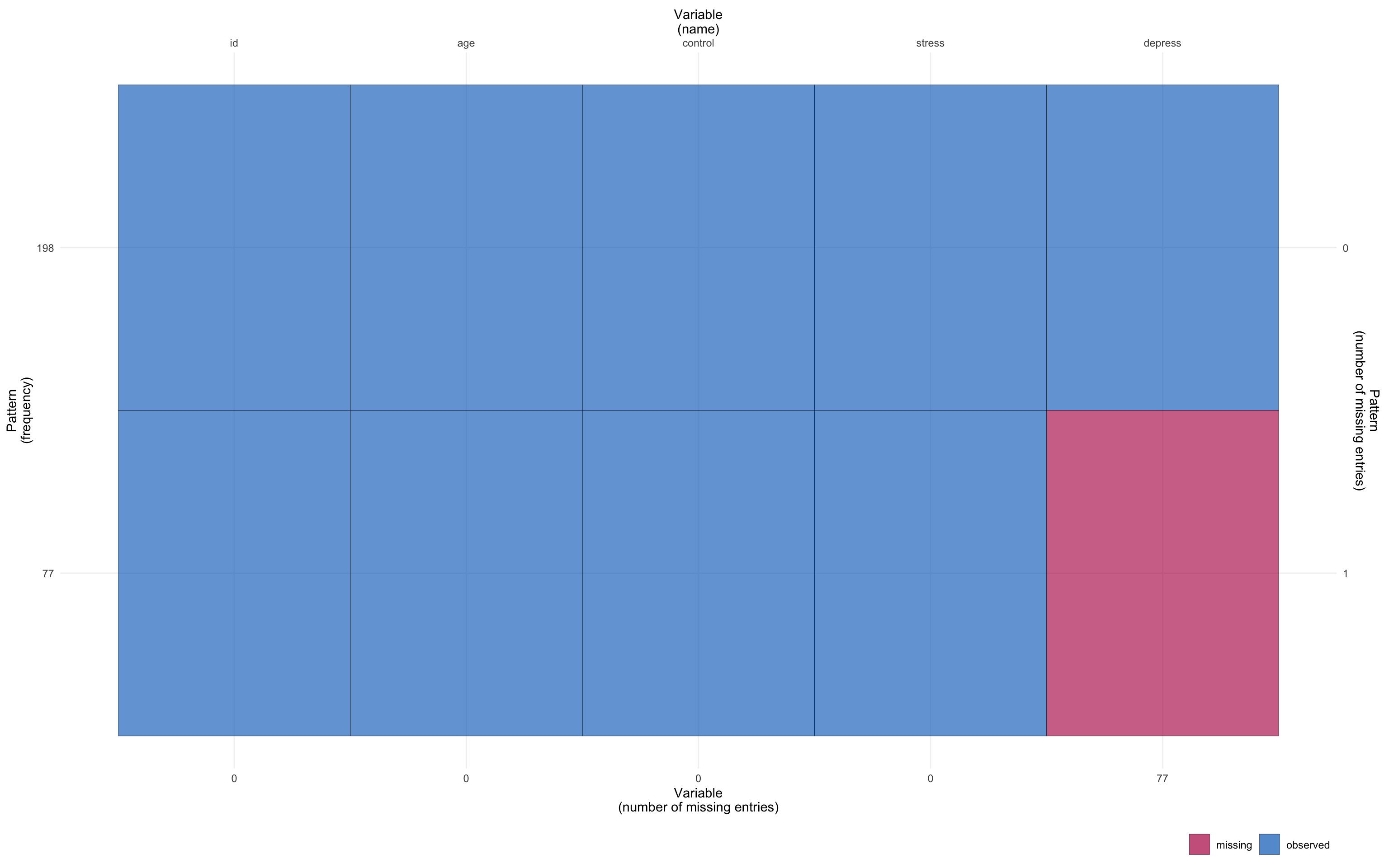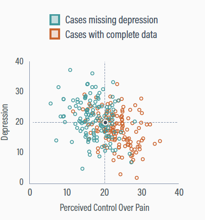 I manipulated the dataset so missingness is related to control over pain (i.e., low control is related to missingness on depression scores)