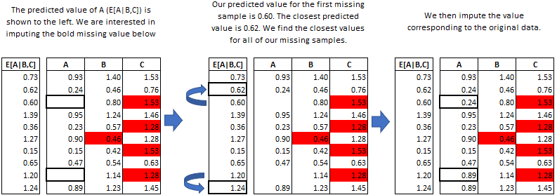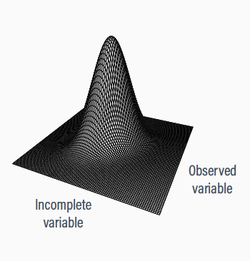 The location of the observed data implies the probable position of the unseen data, and estimates are adjusted accordingly