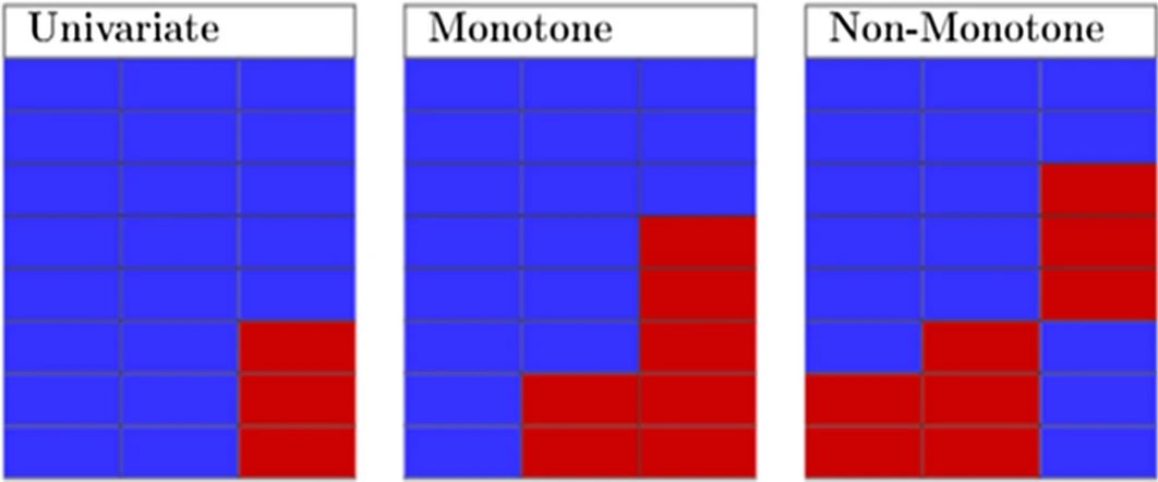 Missing data mechanisms (processes) describe different ways in which the data relate to nonresponse