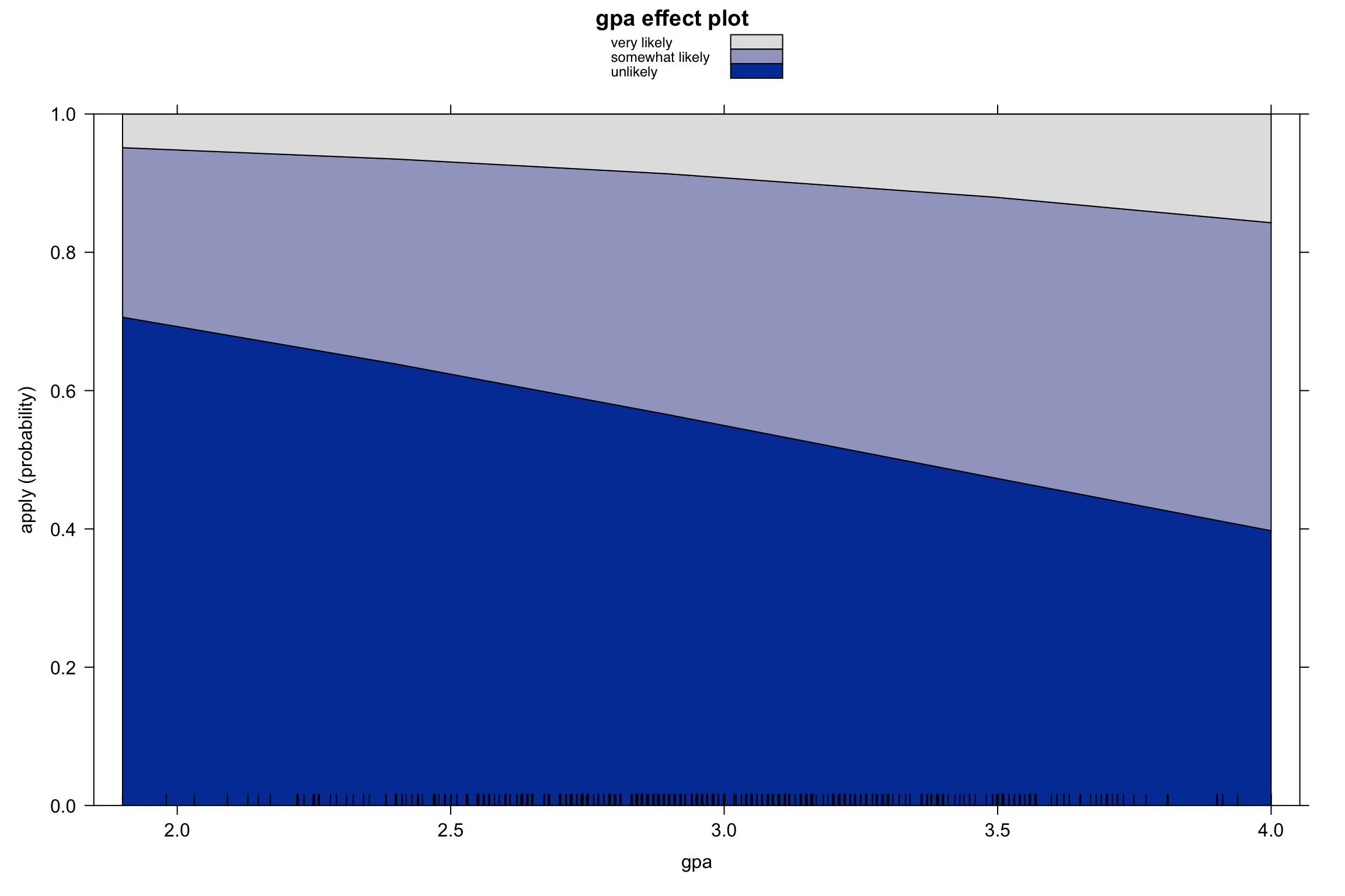 somewhat likely gpa +1 0.08675 0.0376 2.307 0.02106 5.6